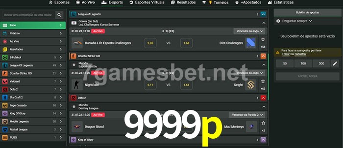 O 9999p oferece uma grande seleção de opções de apostas em e-sports com probabilidades competitivas